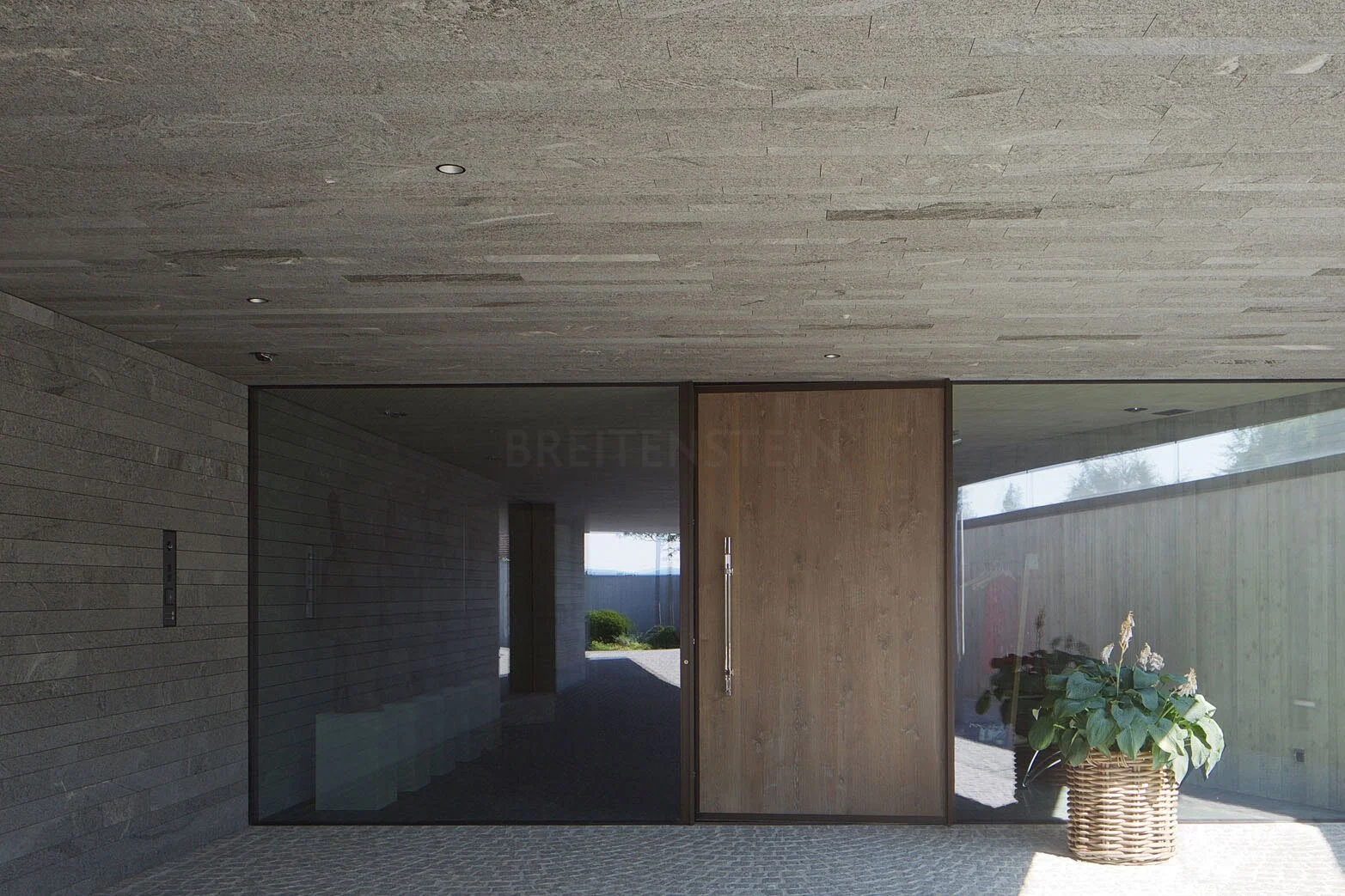 Grosszügig und weitläufig fügt sich das Traumhaus in die natürliche Neigung des Hanges. Mitten im Grünen ist das Haus Wohlfühloase für zwei Familien.